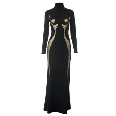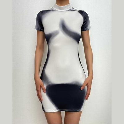 Long sleeve body print crewneck contrast mini dress-final-sale