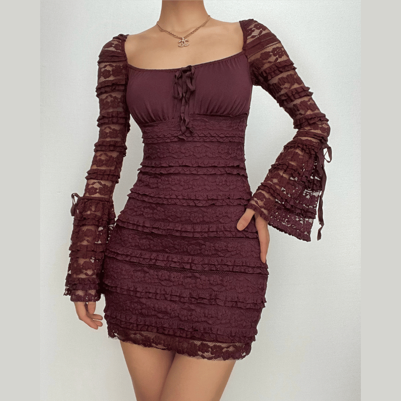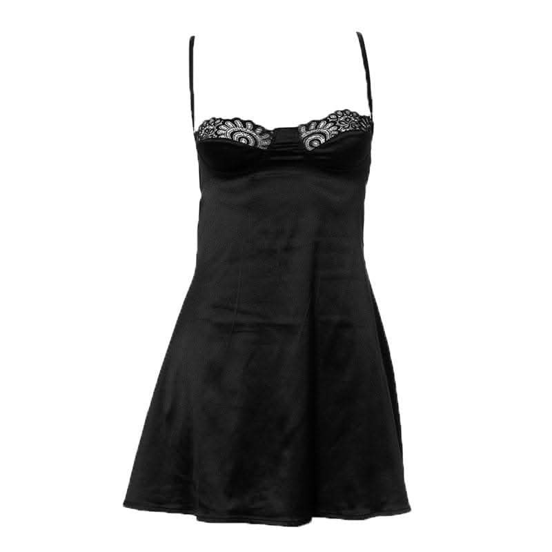 Lace hem satin ruched hollow out backless cami cut out mini dress-final-sale | Festival Outfits Women