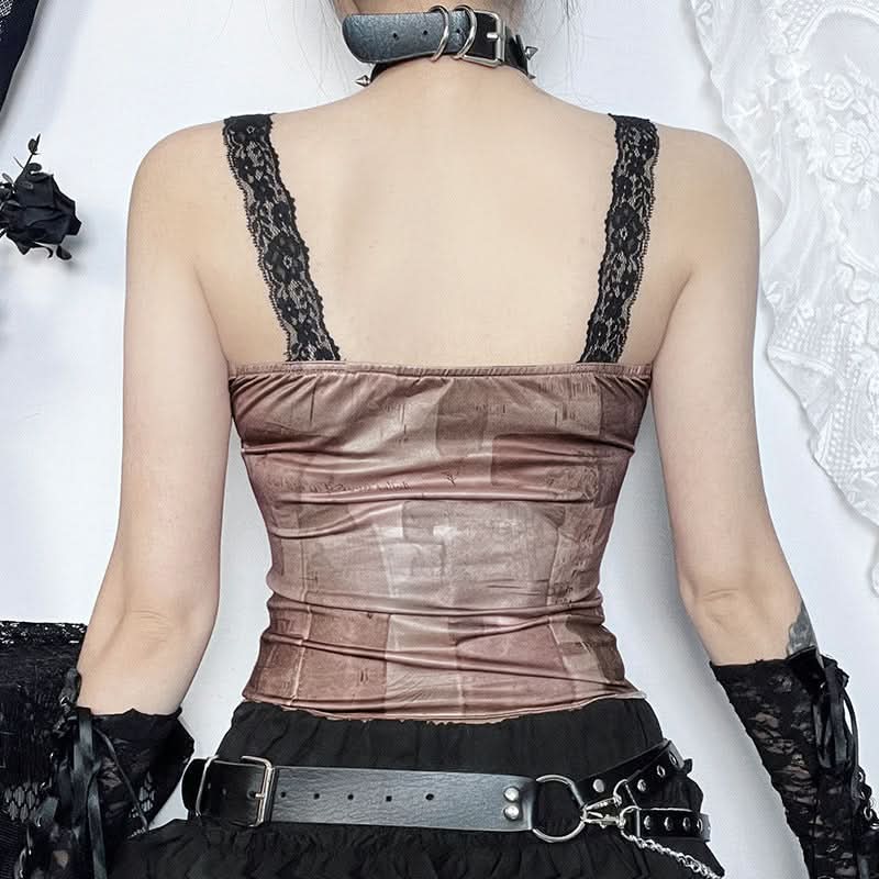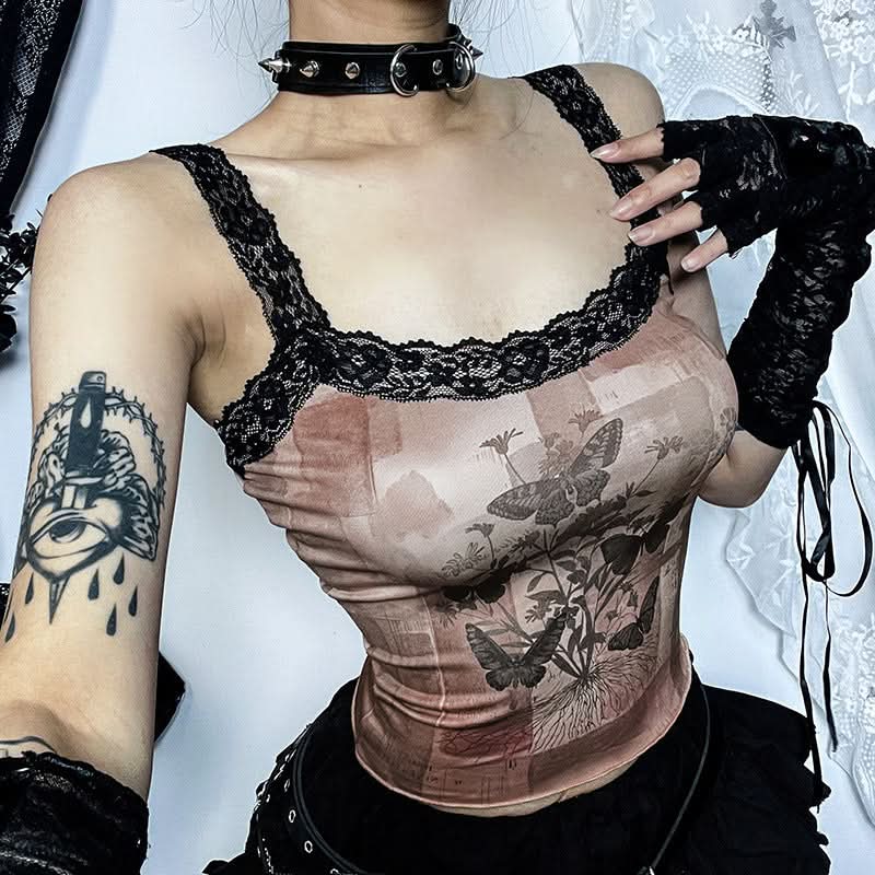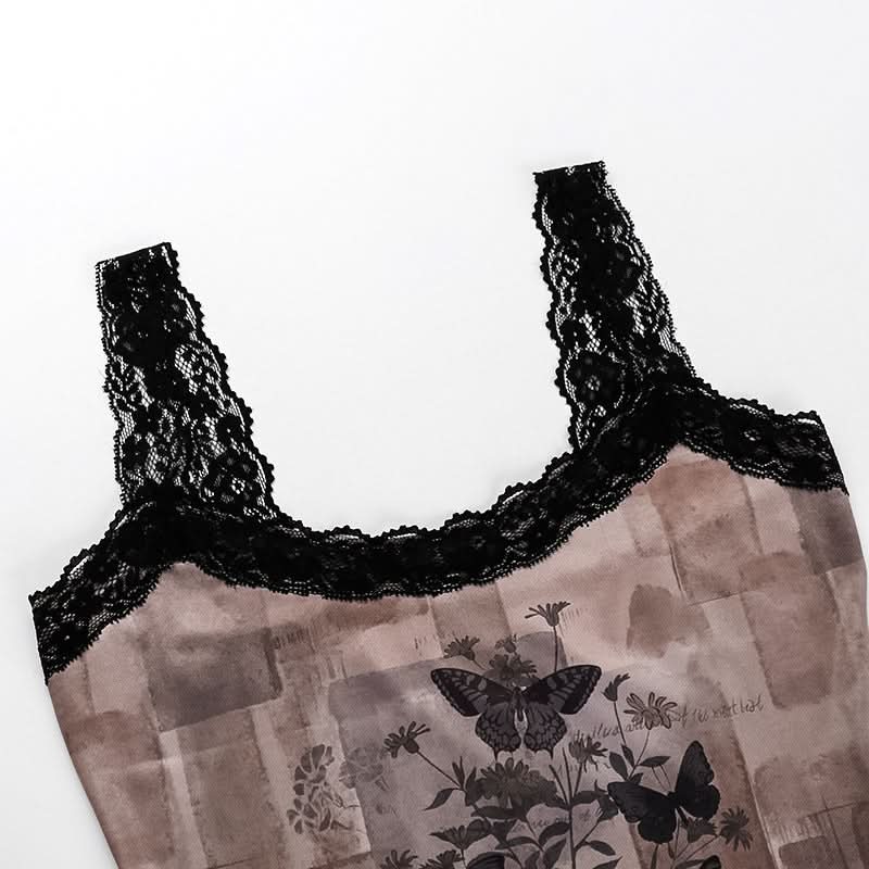 Lace hem butterfly print cami top