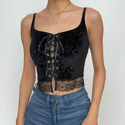 Lace up contrast ruffle corset notch neck tube crop top-final-sale