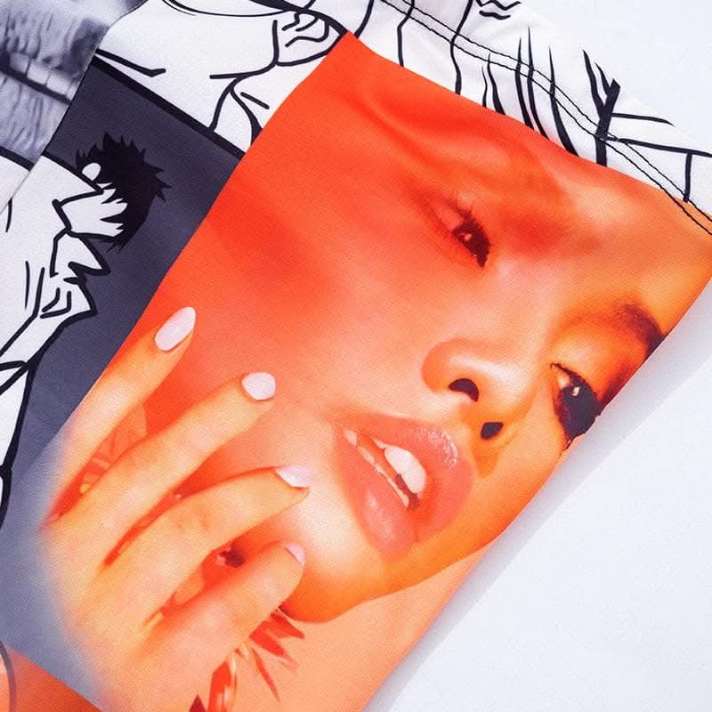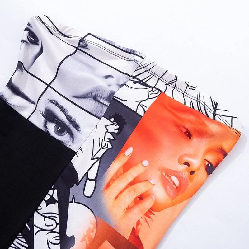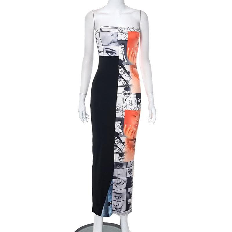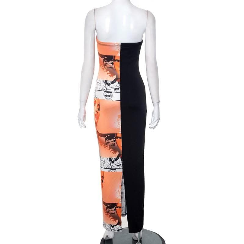 Abstract print contrast patchwork backless slit tube maxi dress-final-sale