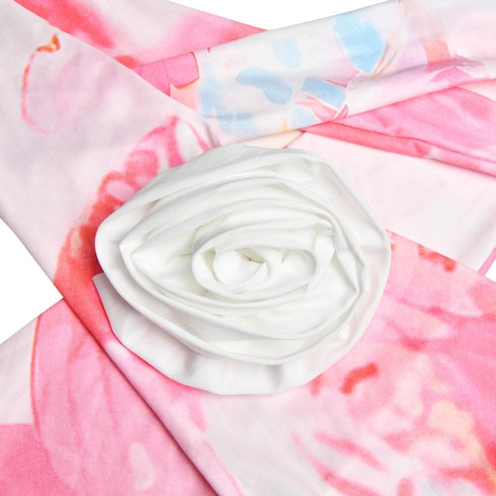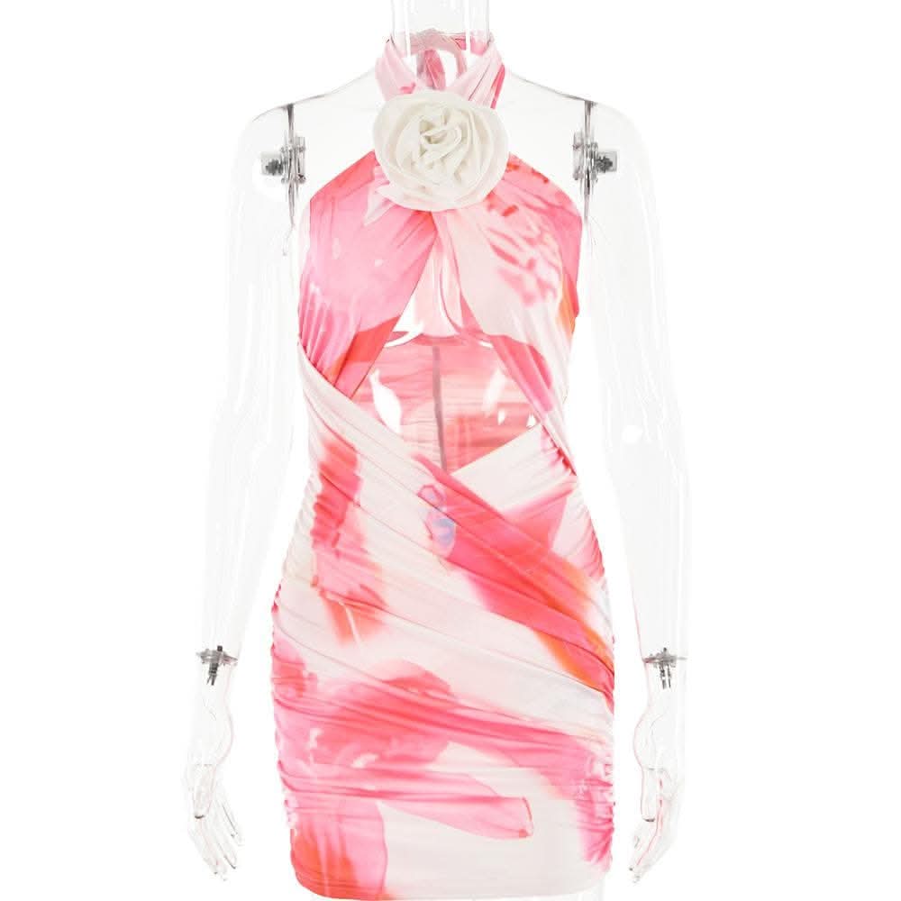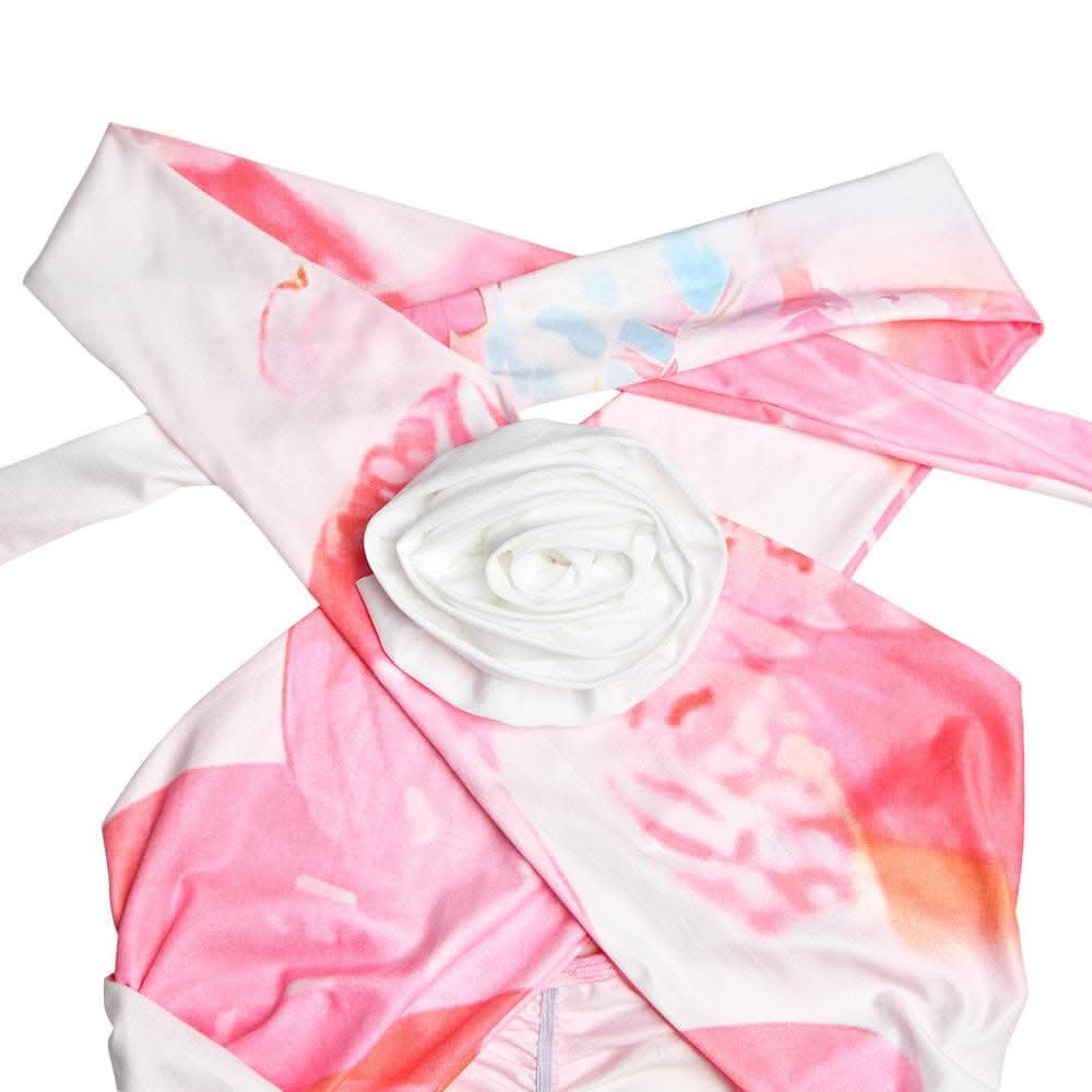 Flower applique cross front ruched contrast self tie mini dress-final-sale