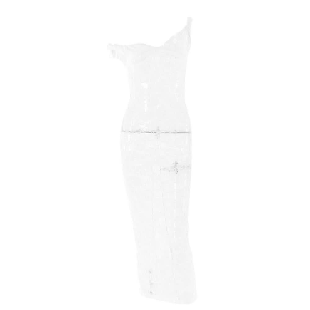 Irregular lace slit see through solid midi dress-final-sale