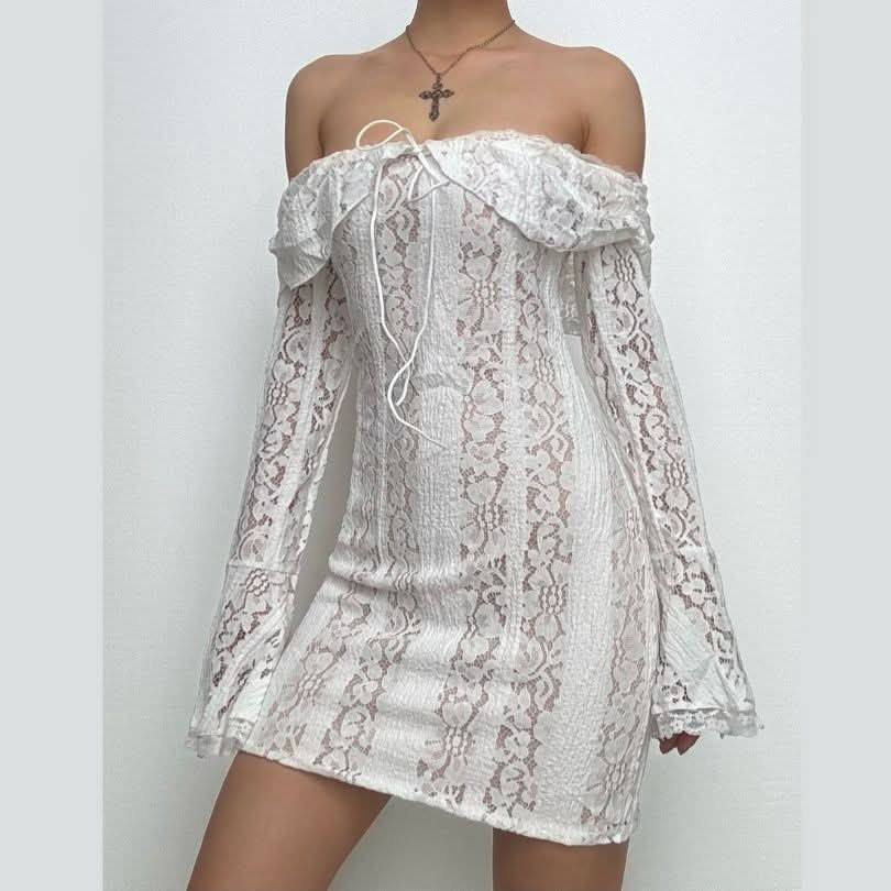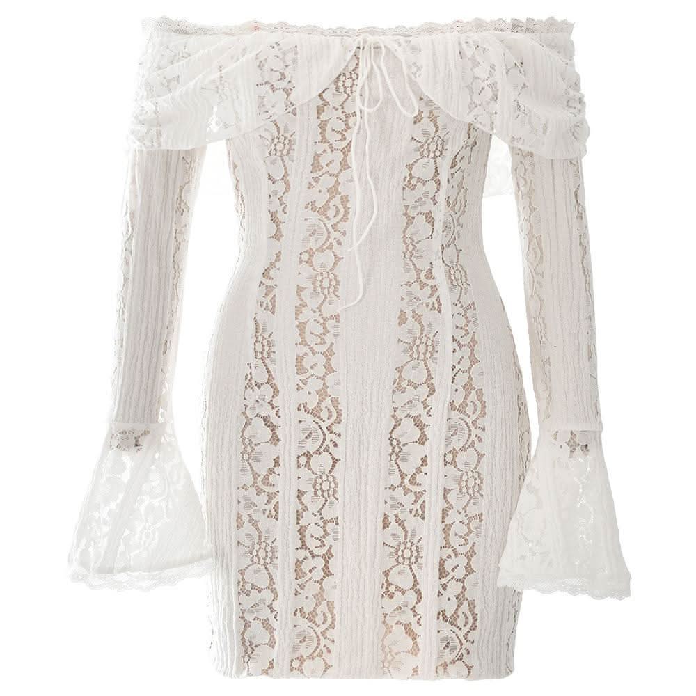 Long flared sleeve off shoulder lace mini dress-final-sale