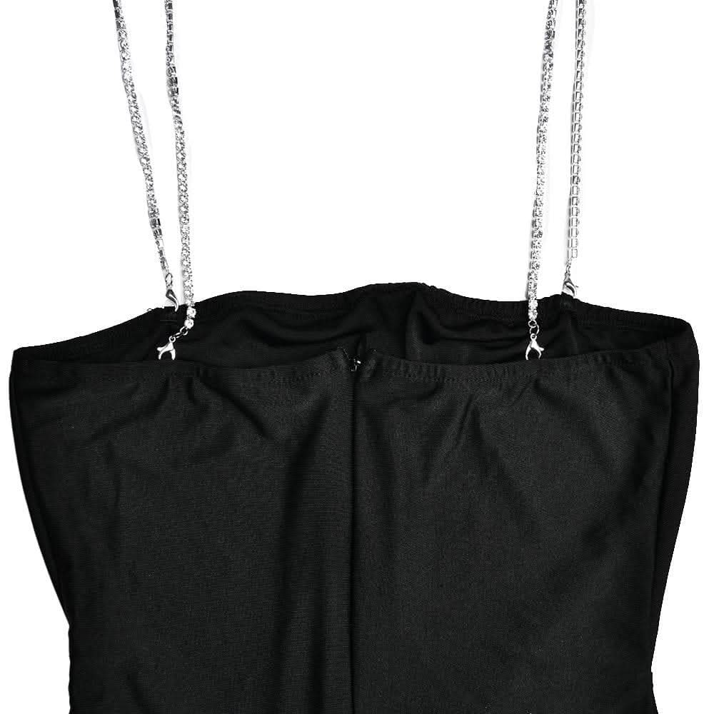 Metal chain square neck slit solid knotted maxi dress-final-sale