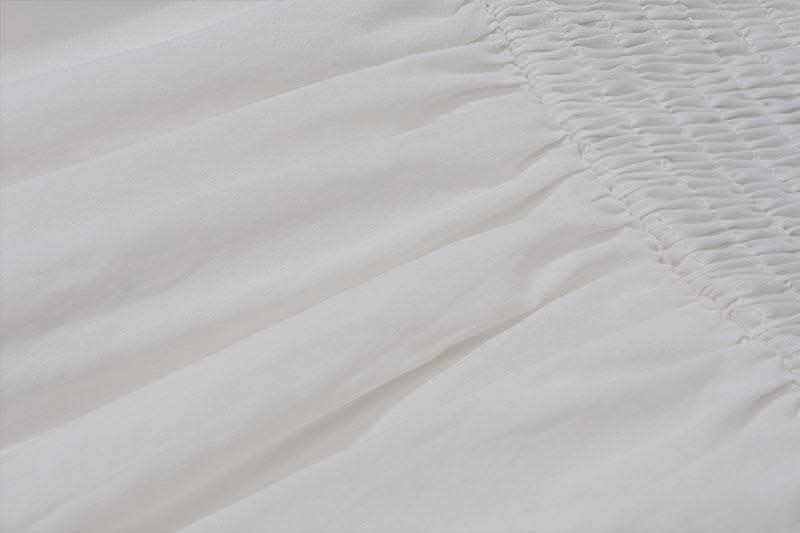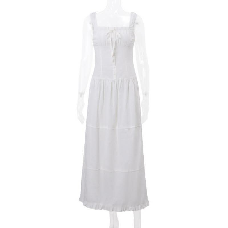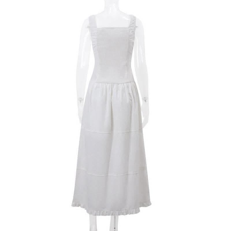 Ruched button square neck sleeveless smocked ruffle midi dress-final-sale