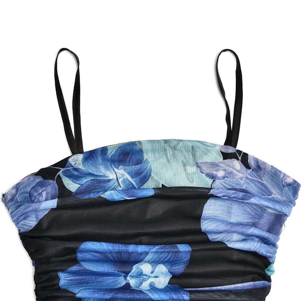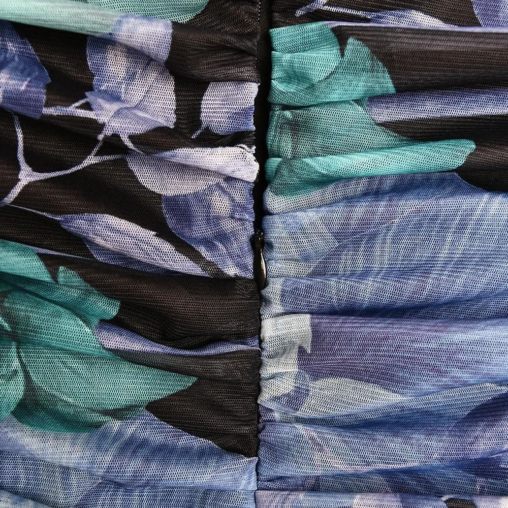 Ruched flower print zip-up square neck contrast slit maxi dress-final-sale