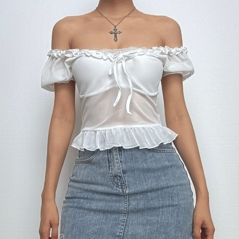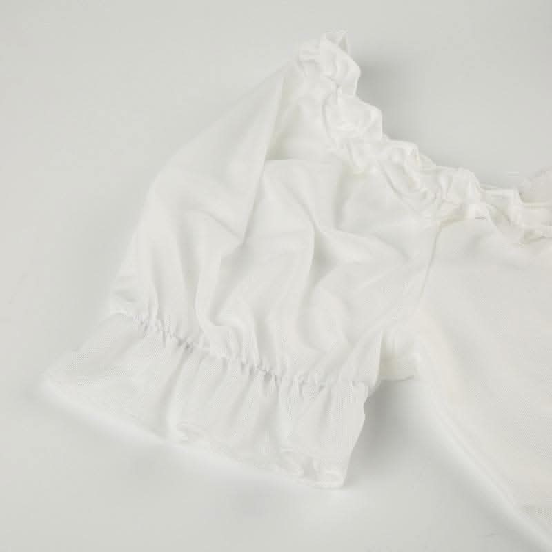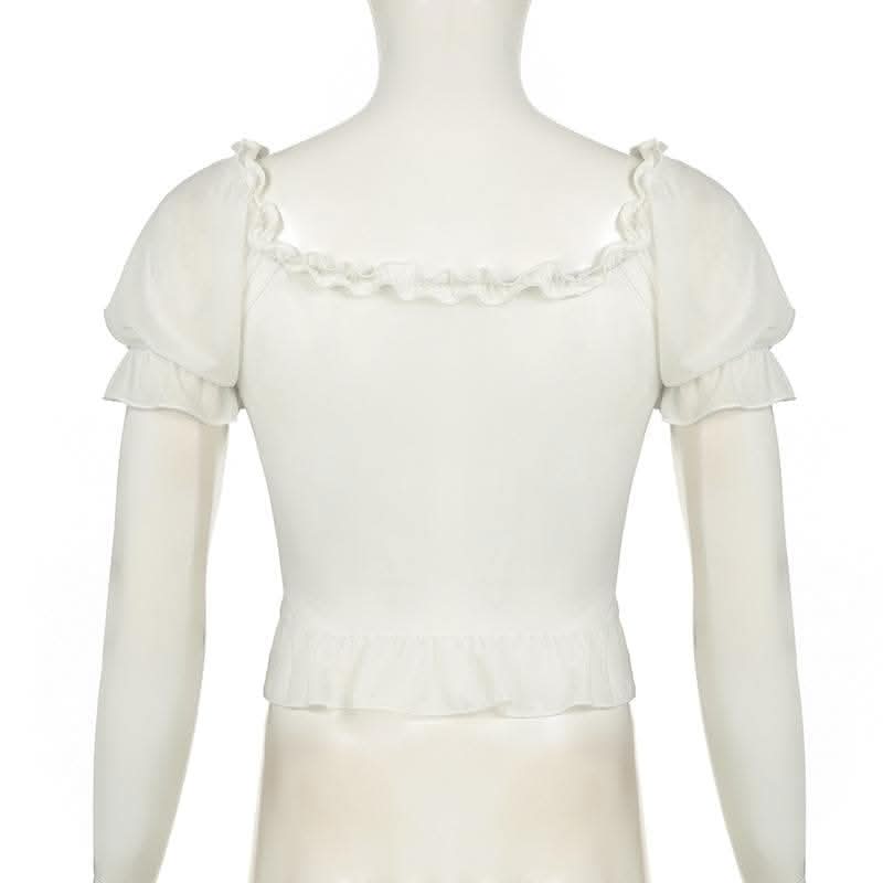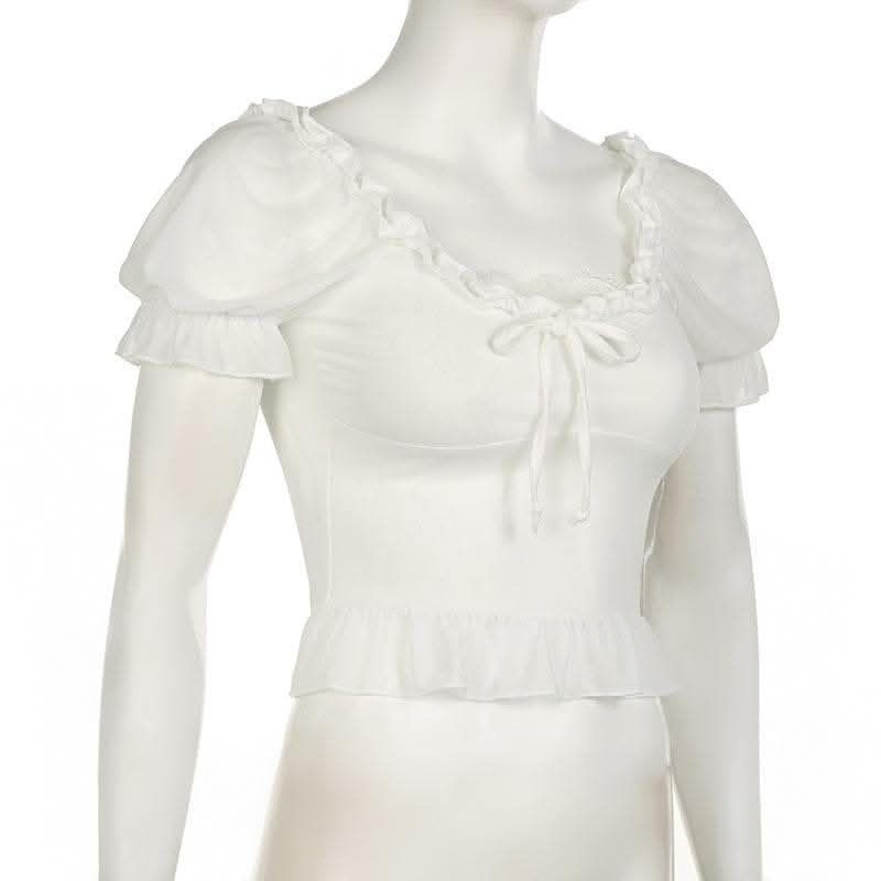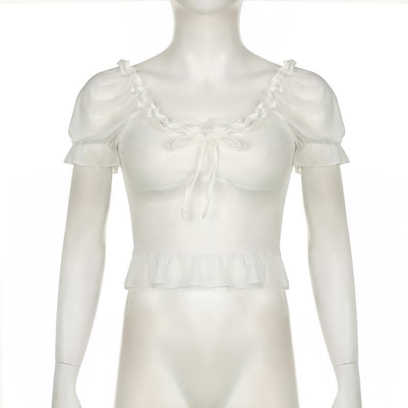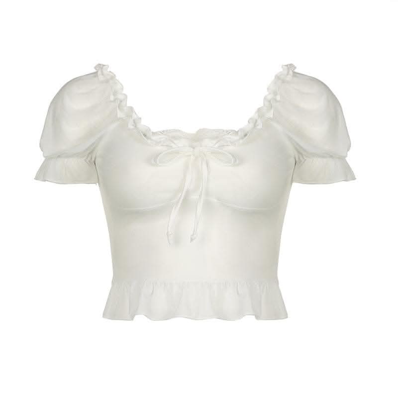 Short puff sleeve ruffle ruched knotted crop top-final-sale