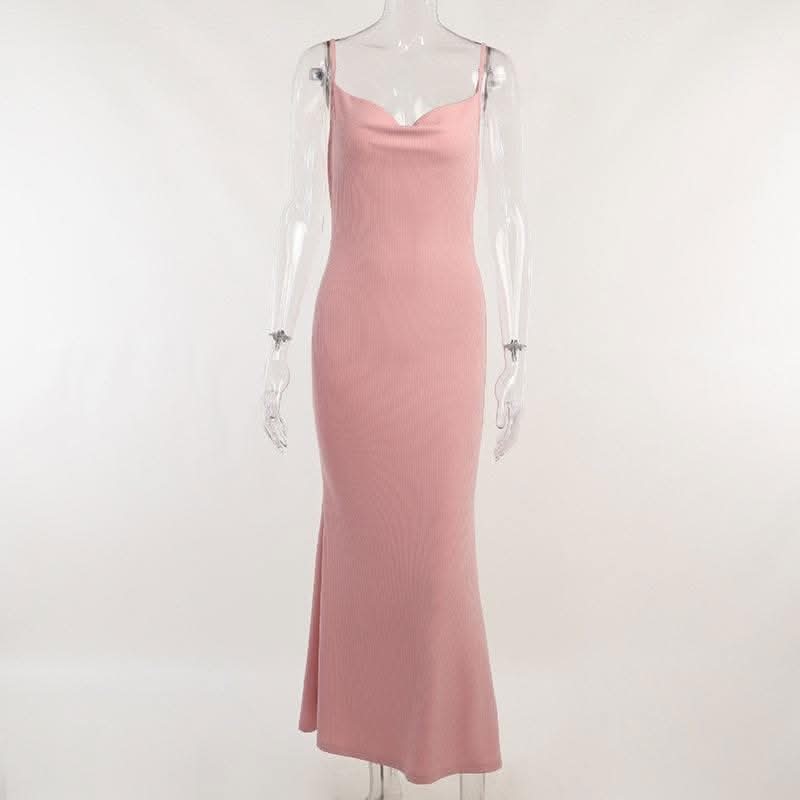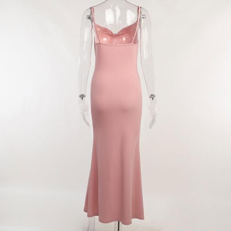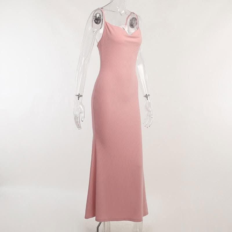 Sleeveless solid ribbed cowl neck backless ruffle maxi dress-final-sale