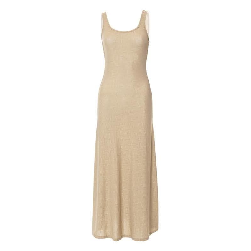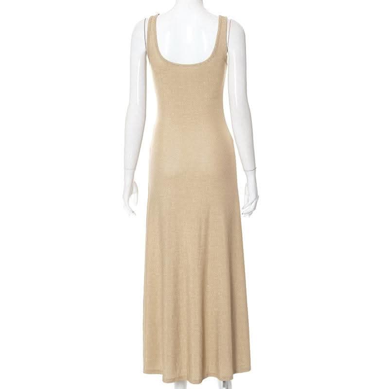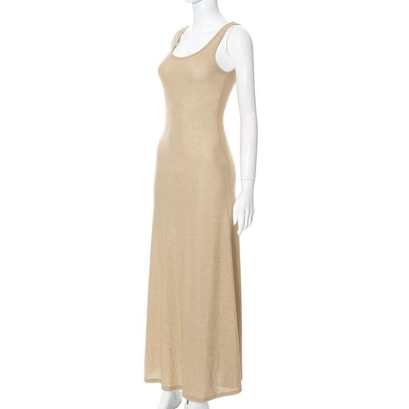 Textured solid sleeveless ruffle u neck maxi dress-final-sale