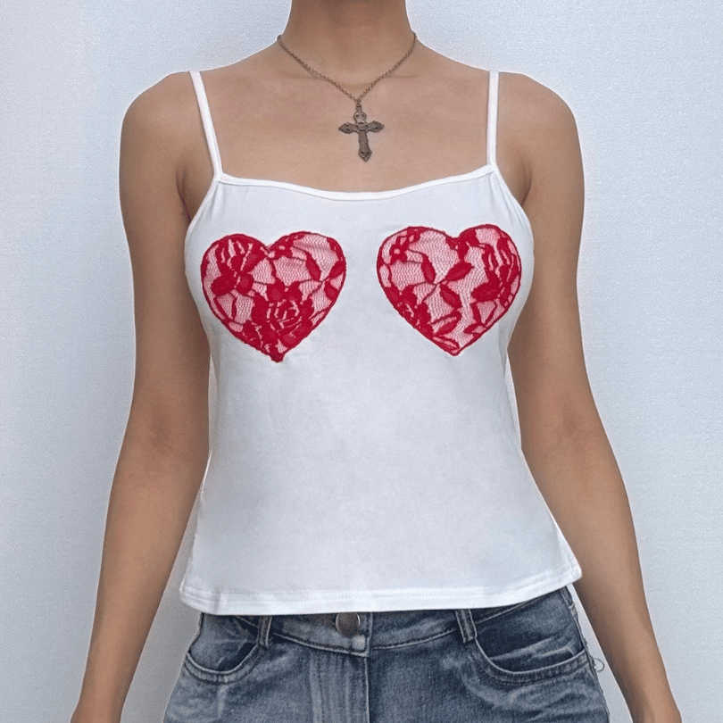 U neck sweetheart pattern cami top-final-sale