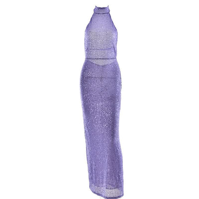 Sleeveless low cut hollow out solid backless cut out maxi dress