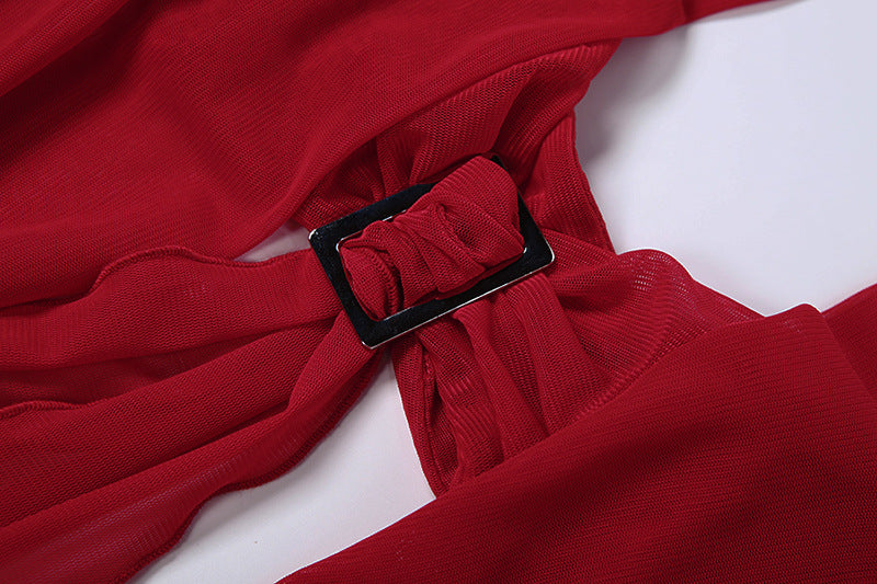 Self tie halter hollow out ruffle mesh mini dress | Festival Outfits W