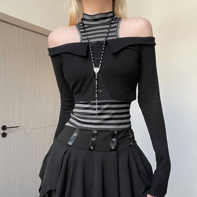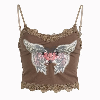 Lace up long flared sleeve ruched lace hem ruffle crop top
