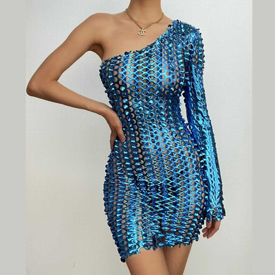 PU leather v neck o ring hollow out cut out mini dress