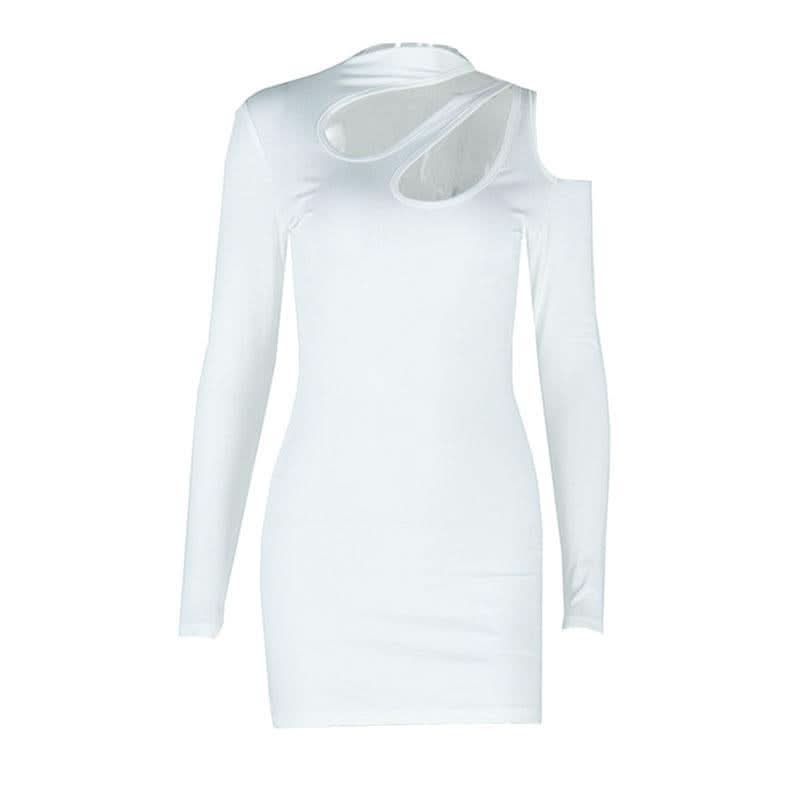 Long sleeve hollow out irregular solid cut out mini dress | Festival Outfits Women
