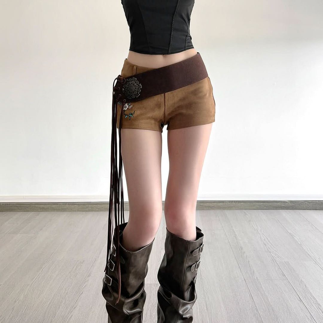 Glitter patchwork textured low rise short pant | Festival Outfits Women
