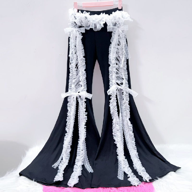 Lace hem bowknot medium rise pant | Festival Outfits Women