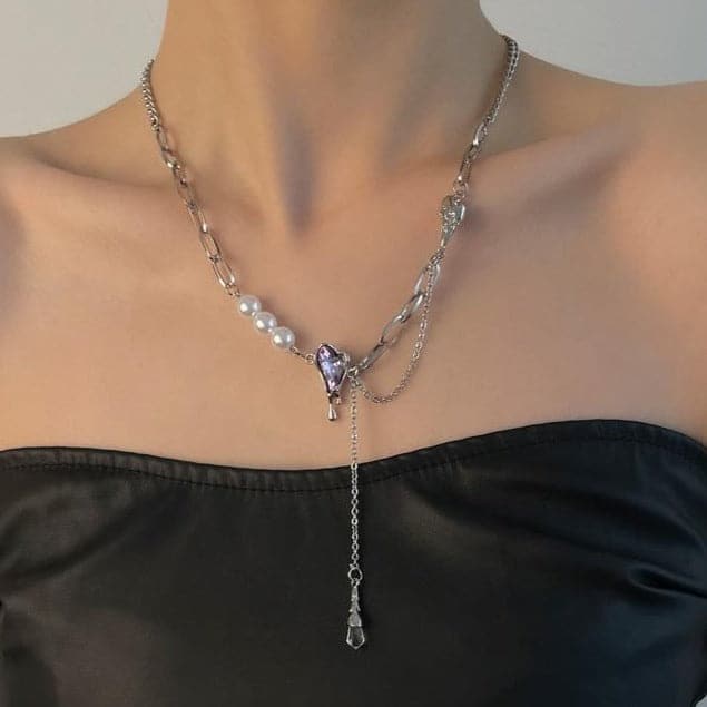Layered faux pearl irregular stone necklace