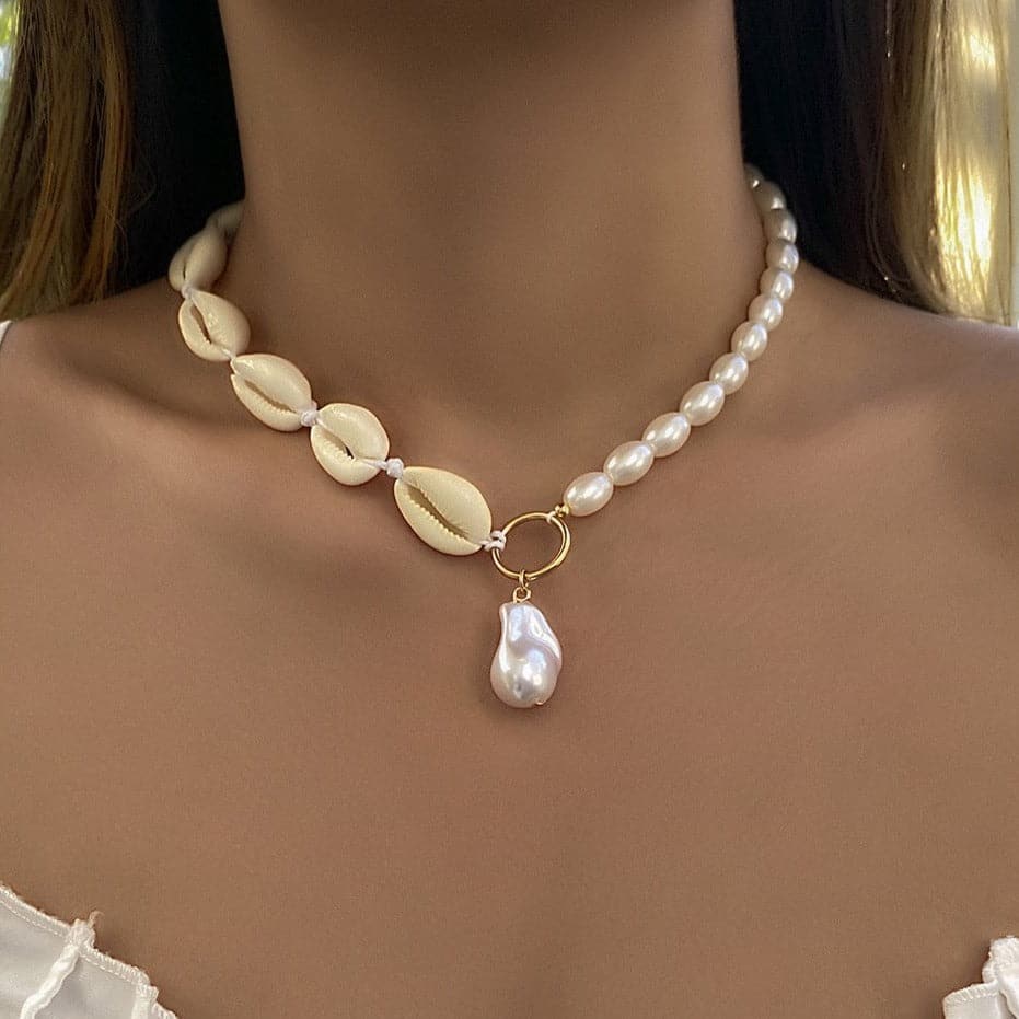 Faux pearl pendant shell choker necklace
