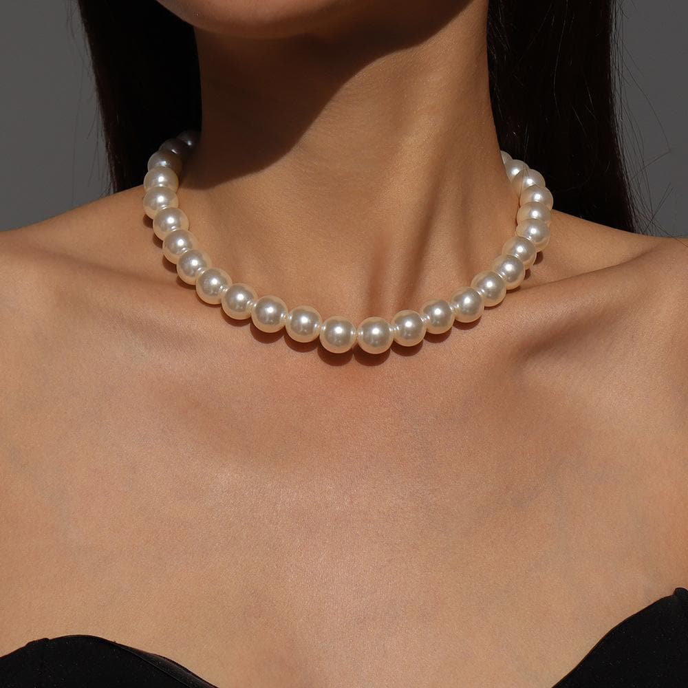 Faux pearl beaded choker necklace