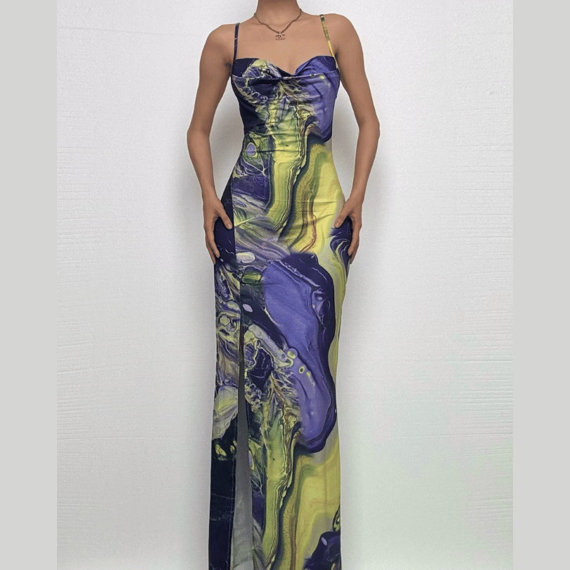 Halter tie back slit tie dye maxi dress