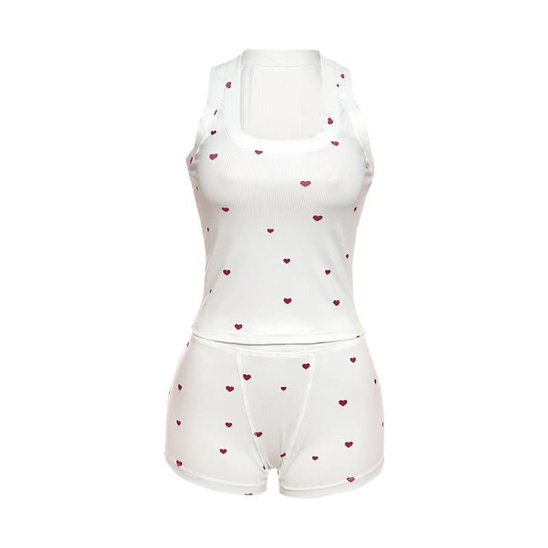 Square neck heart print ribbed pant set | Festival Outfits Women