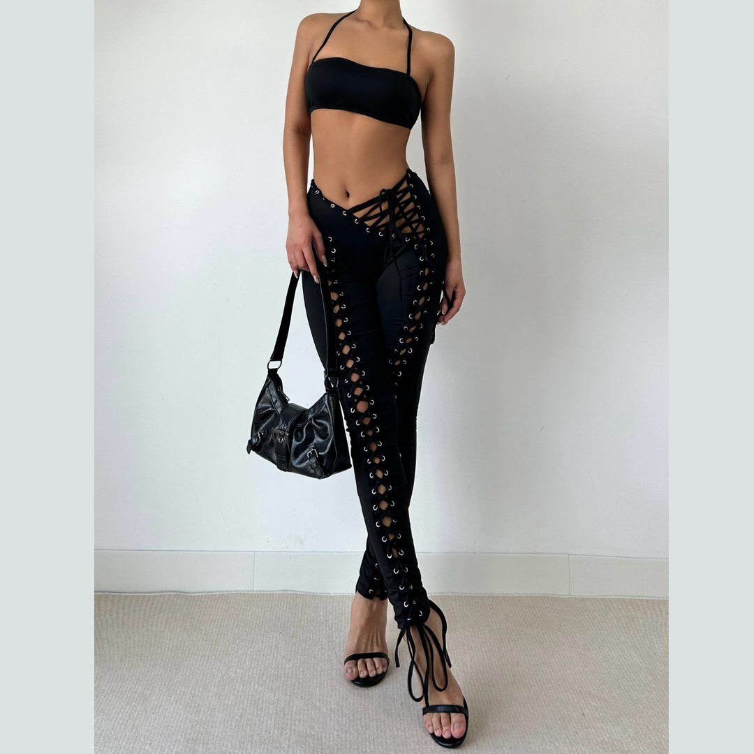 Self tie halter square neck lace up pant set | Festival Outfits Women
