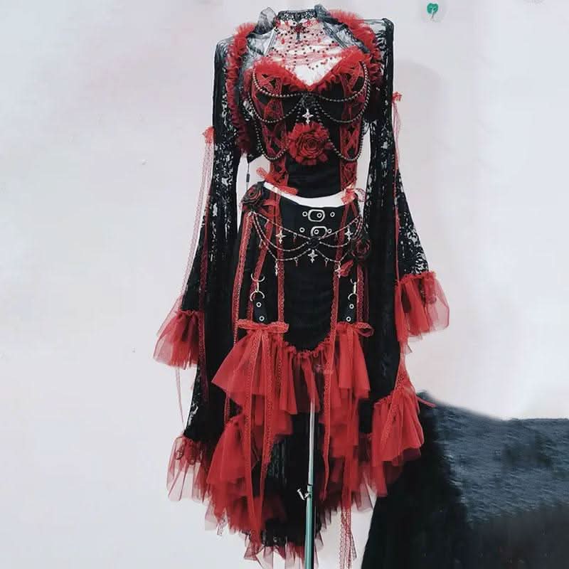 Mesh contrast bowknot gloves lace up tube backless mini skirt set-final-sale | Festival Outfits Women