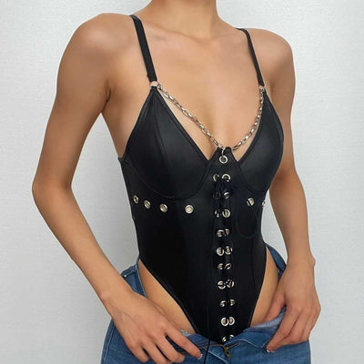 Long sleeve solid mesh backless one shoulder button bodysuit