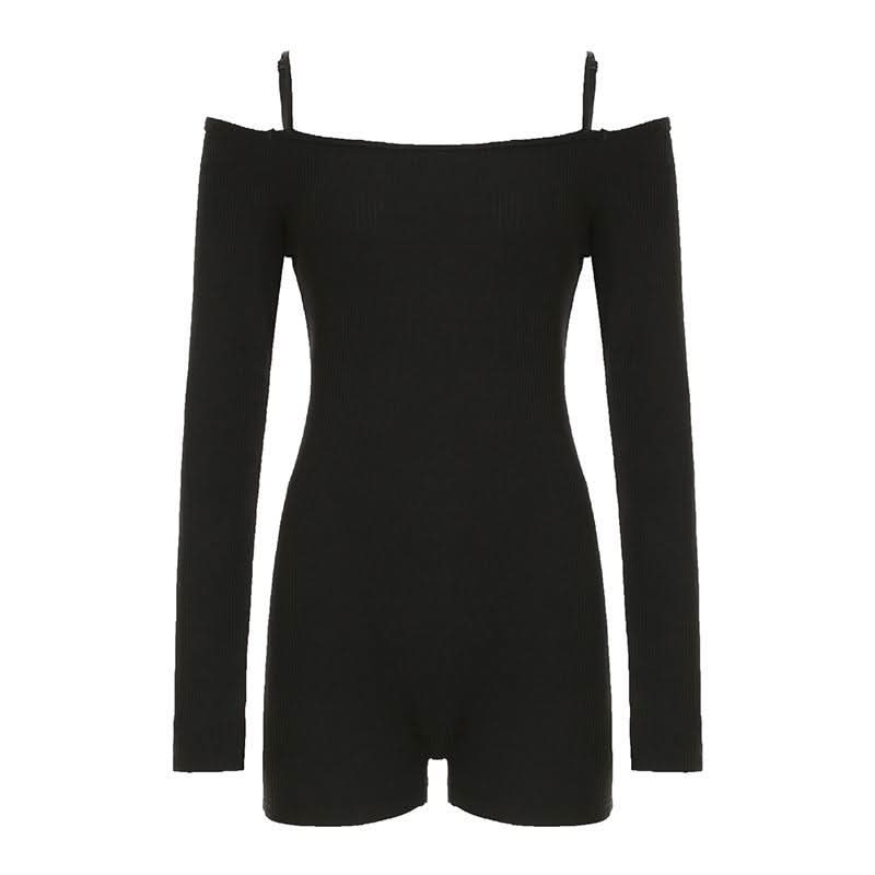 Off shoulder long sleeve solid romper | Festival Outfits Women