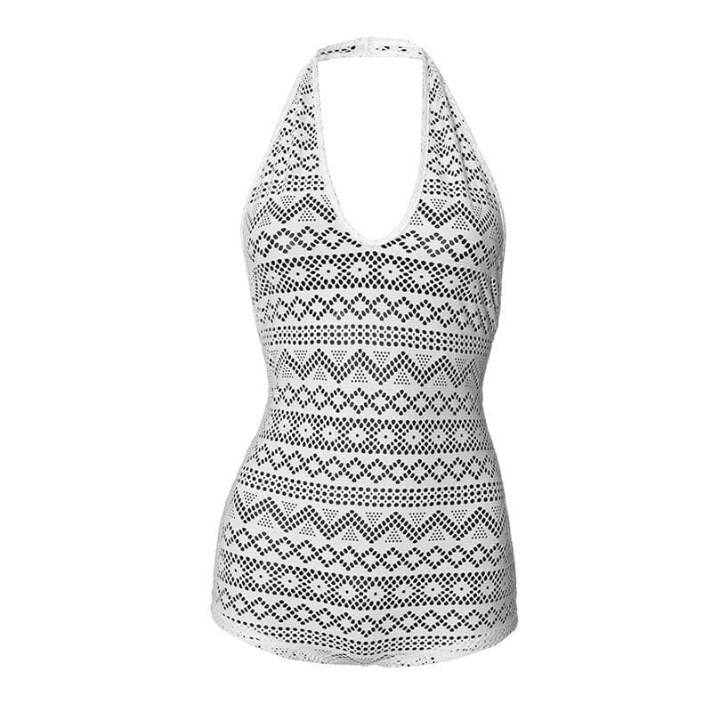 Halter lace hollow out see through backless romper | Festival Outfits Women