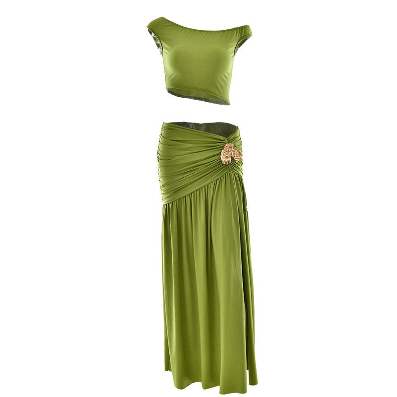 Ruched high slit irregular solid maxi skirt set | Festival Outfits Women