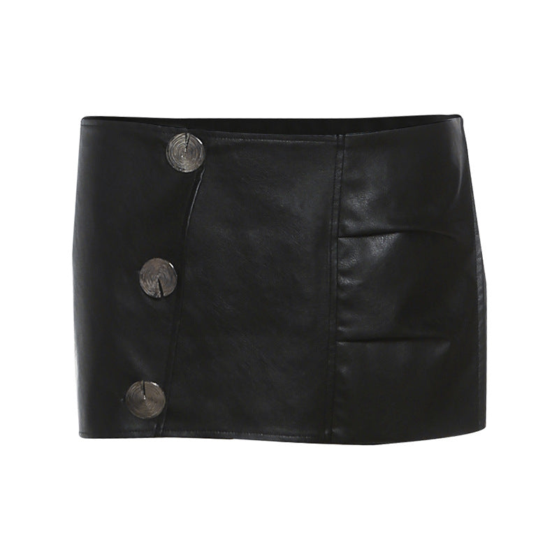 Button PU leather pleated solid mini skirt Cargo Mini Skirt | Festival Outfits Women