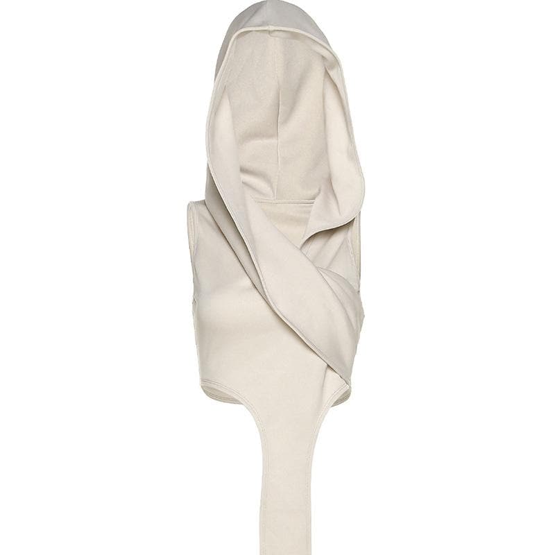 Sleeveless solid irregular ribbon hoodie ruched crop top