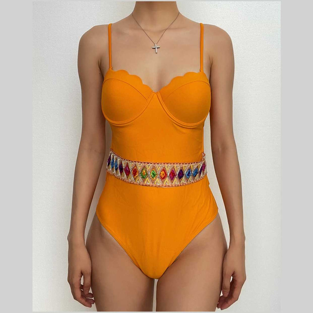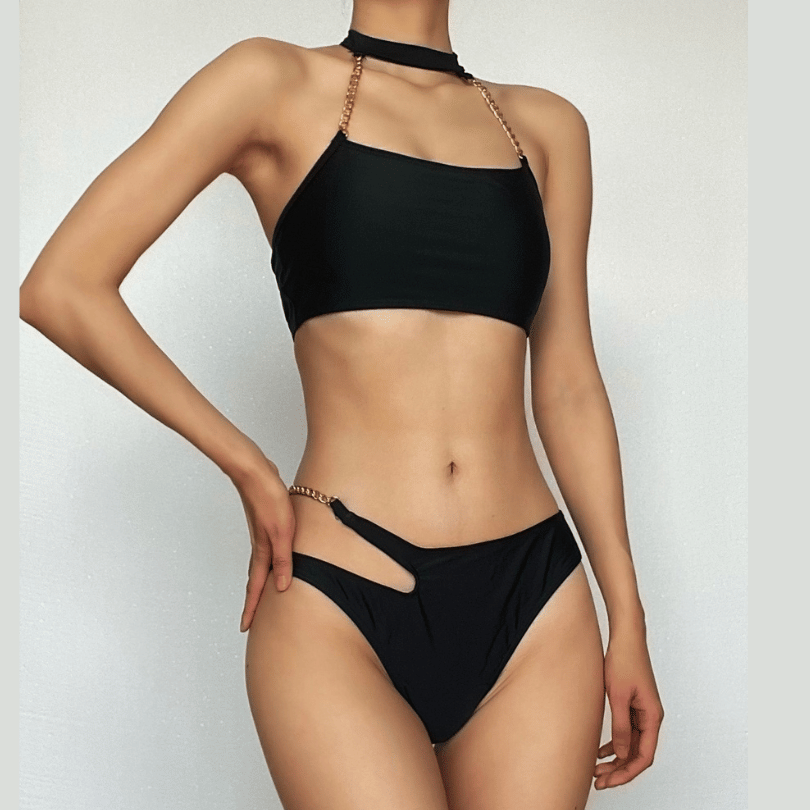 Padded o ring butterfly pattern hollow out cami bikini swimwear