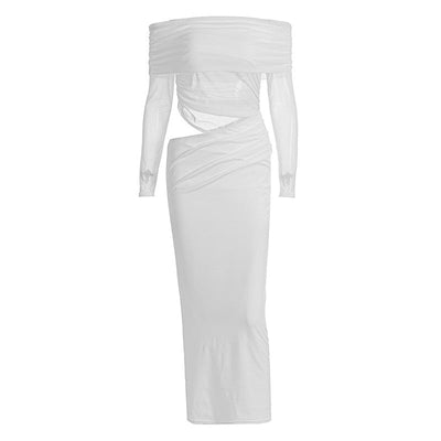 Long sleeve mesh off shoulder hollow out cut out maxi dress