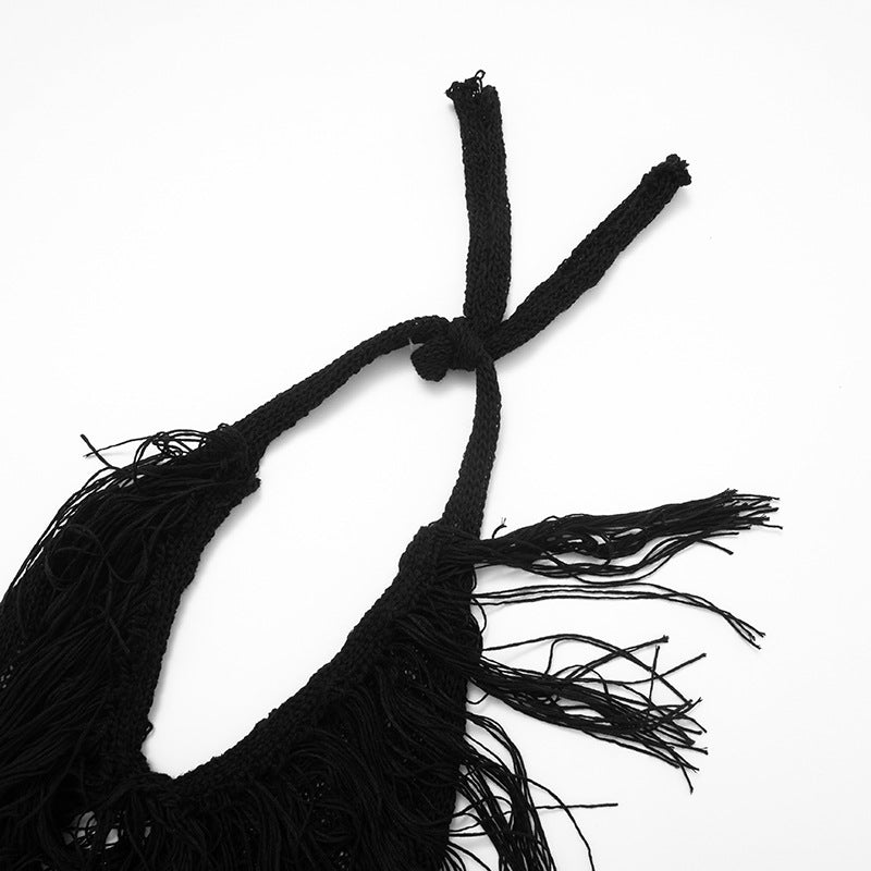 Halter tassels self tie hollow out jumpsuit