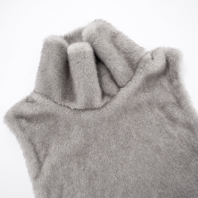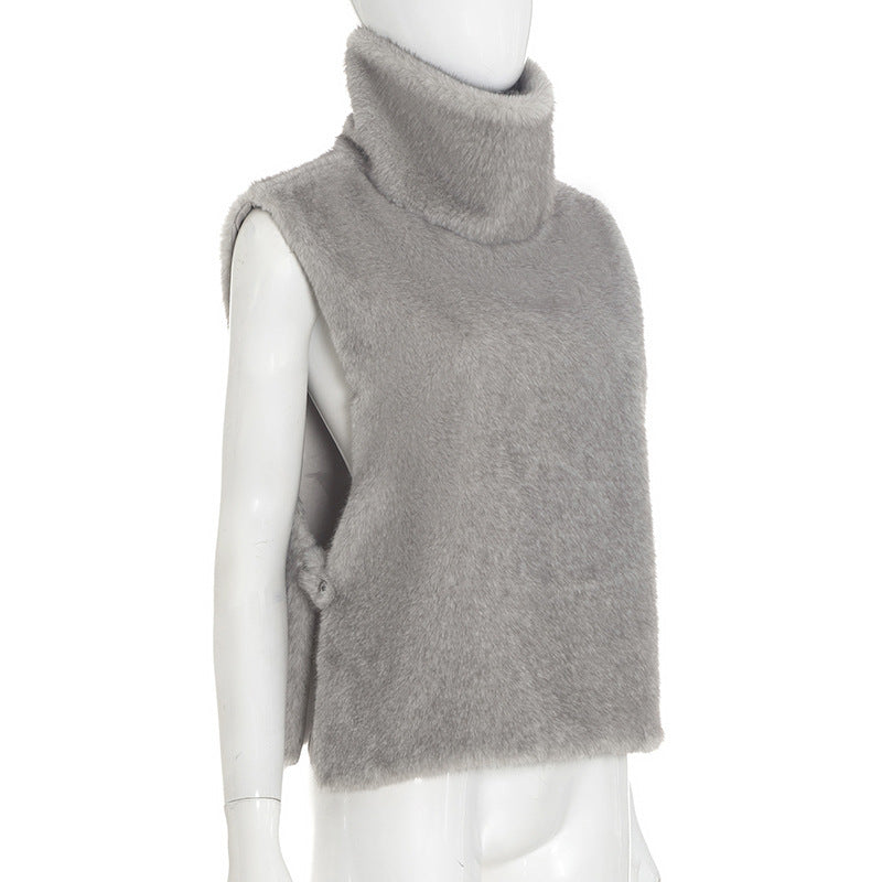 High neck fluffy button sleeveless top
