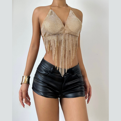 Patchwork metal chain buckle hoodie long sleeve crop top