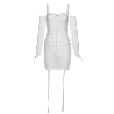 Long sleeve solid slit square neck self tie mini dress