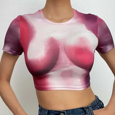 Lace hem butterfly pattern contrast sleeveless ribbed crop top