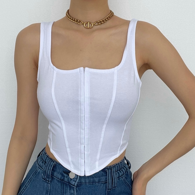 Sleeveless crewneck hollow out beaded contrast crop cut out top