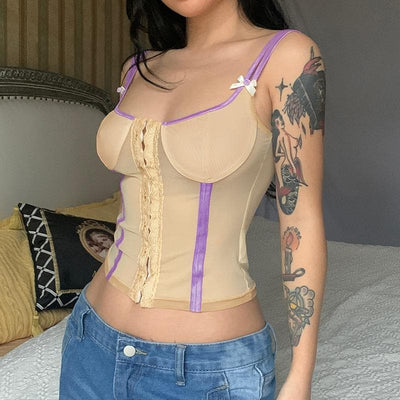Patchwork ribbed contrast zip-up high neck sleeveless crop top