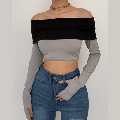 Long sleeve solid square neck crop top