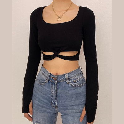 Long sleeve solid hollow out lace up self tie cut out mini dress