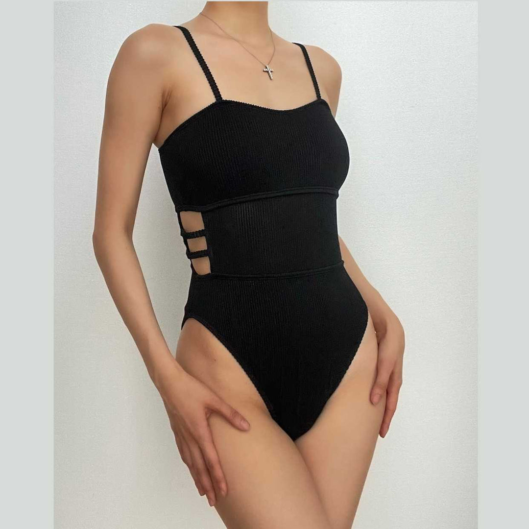 Padded hollow out solid cami one piece swimwear