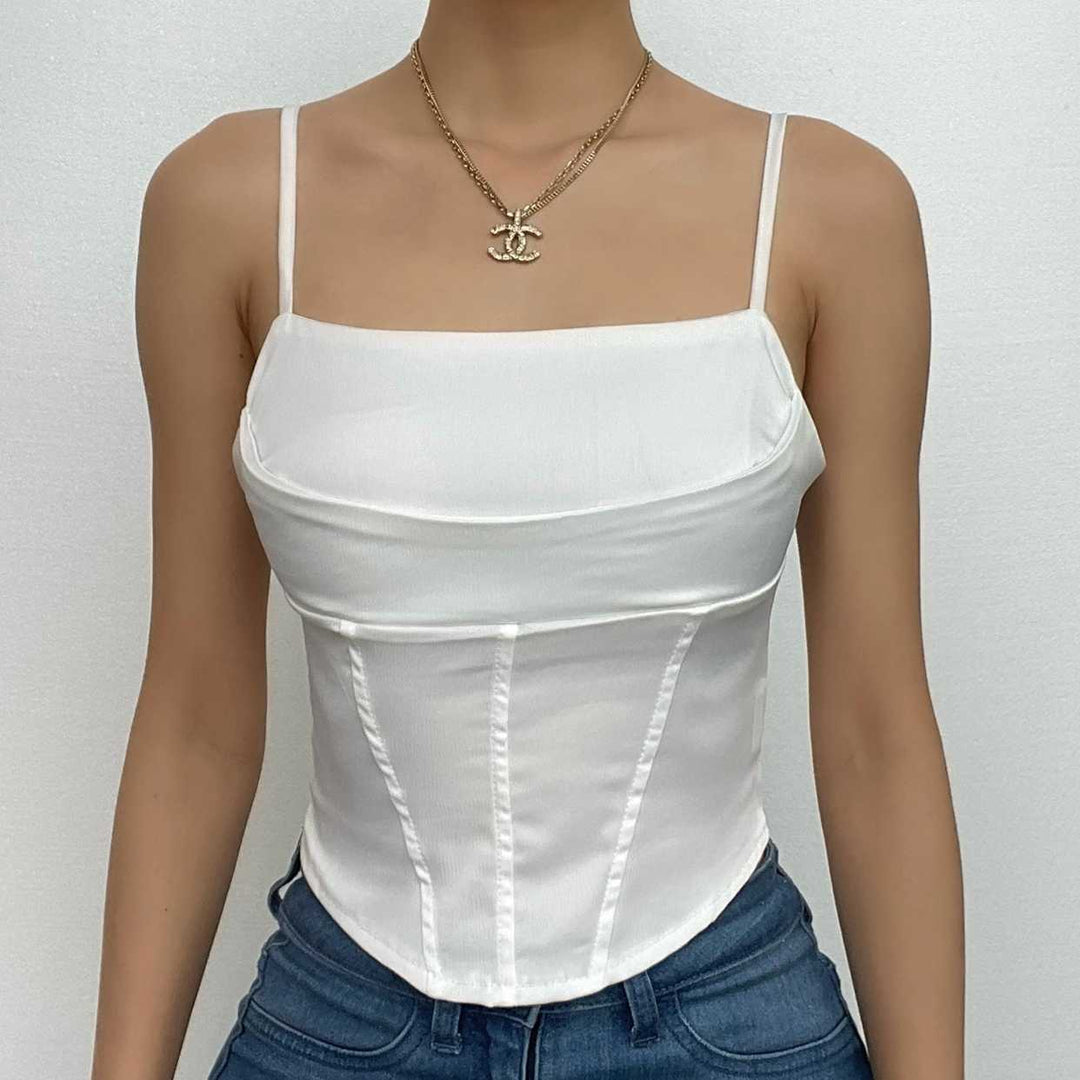 Square neck lace up solid satin corset backless cami top