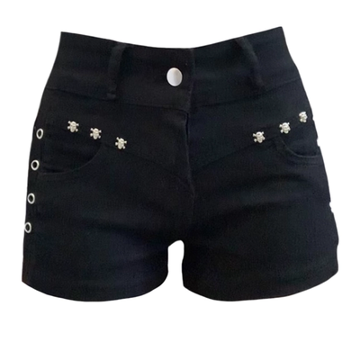 Fluffy low rise belt solid denim shorts without sweetheart applique