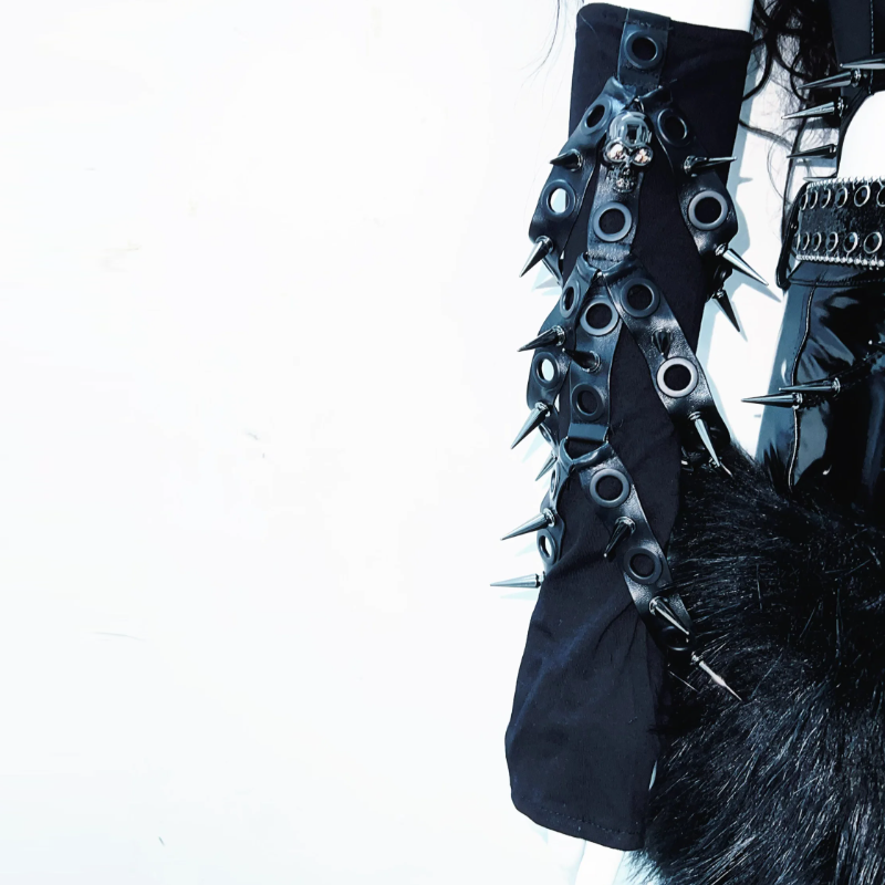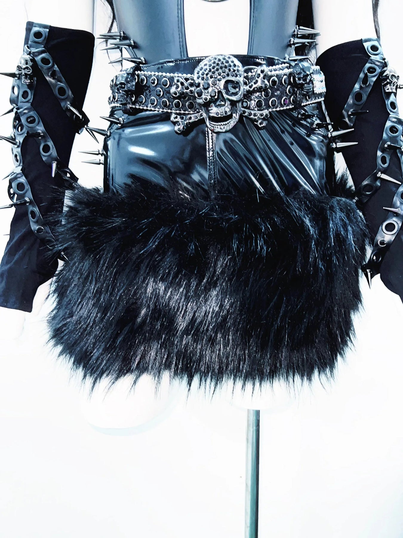 PU leather u neck rivet applique o ring hollow out bodysuit | Festival